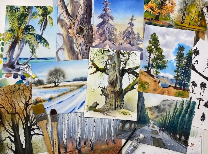 Выполните 10 практических работ акварелью и научитесь рисовать деревья с Дарьей Куцаевой и Художник Online!