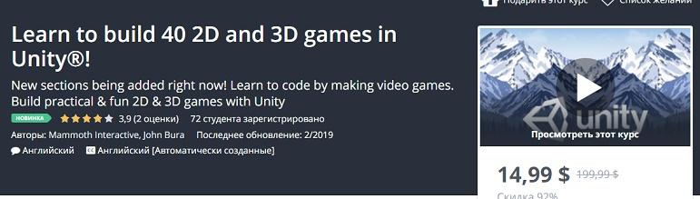 Udemy Создаем 40 2D и 3D игр на юнити (2019)