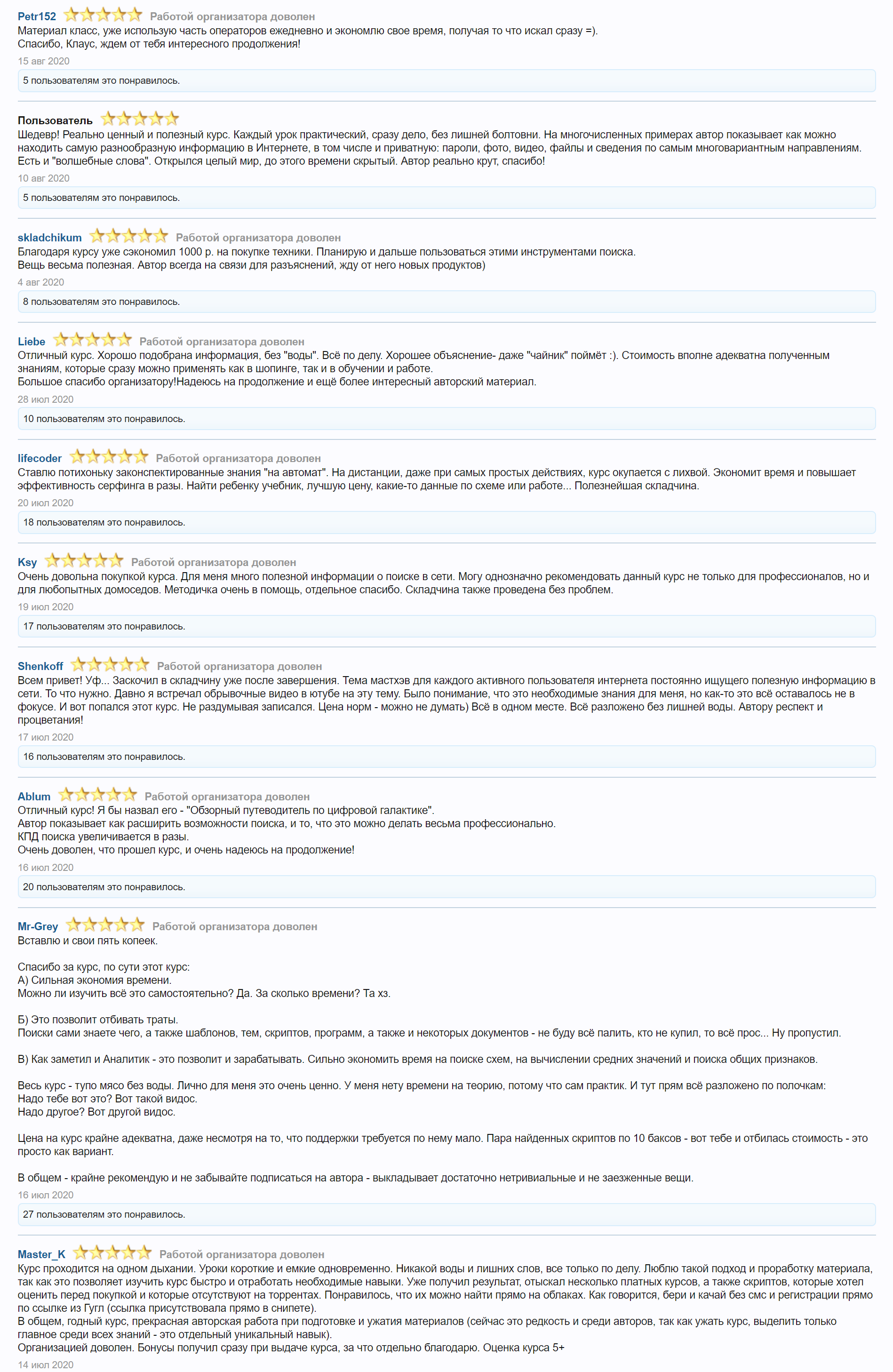 Курс рекомендовать широкому кругу пользователей и будет полезен не только сеошникам, арбитражникам и дорвейщикам, навык поиска любой информации из первоисточника ценен сам по себе и будет в ваших руках дополнительным преимуществом.
